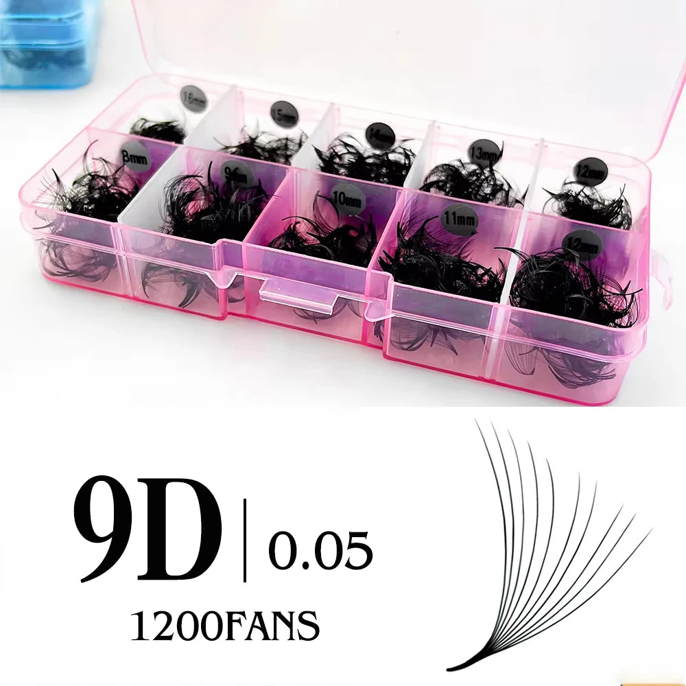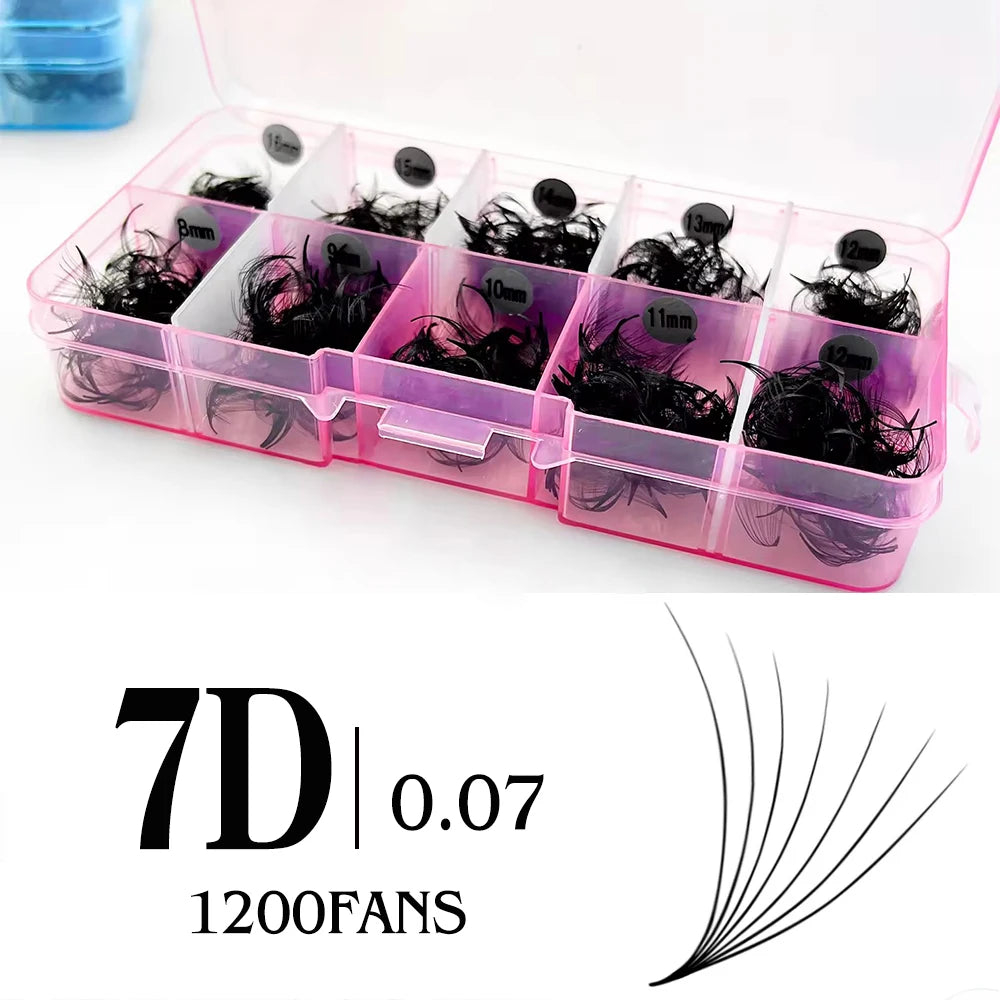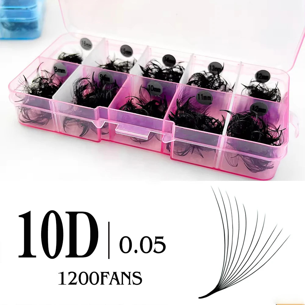 Achieve stunning volume with these premade Russian volume lash fans. Featuring a thin, pointy base for seamless application, these handmade fans are crafted from premium Korean PBT fiber for a soft, natural black finish. With 1200 medium-stem fans per box, they deliver a bold, fluffy look while saving time for lash artists and salon pros.