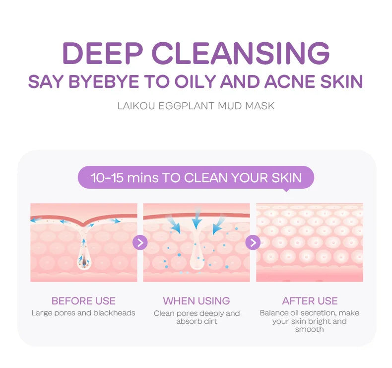 Refresh and rebalance your skin with this Eggplant Mud Mask Set, formulated with natural eggplant extract, centella asiatica, and hyaluronic acid to purify pores, reduce acne, and control excess oil. Each individually packed mask provides a spa-like treatment that leaves your skin smooth, hydrated, and radiant.