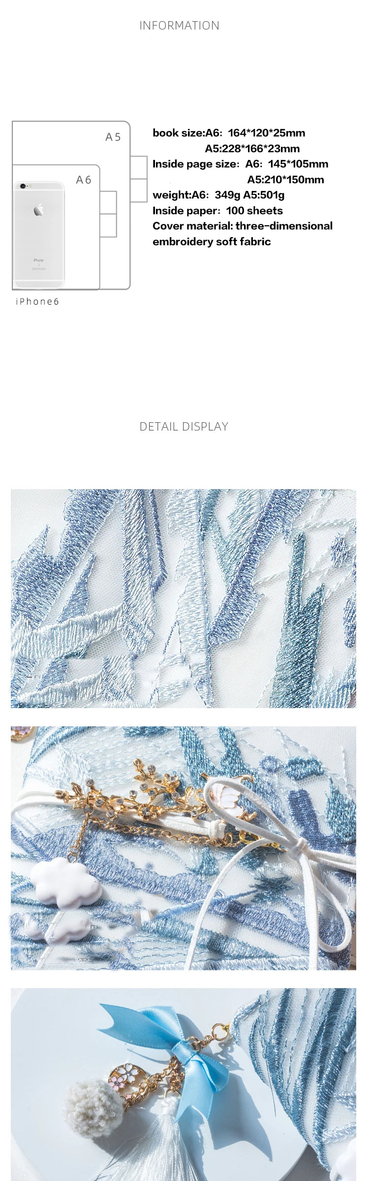 A5/A6 Cherry Blossom Embroidery Notebook – Cute Tassel Strap Diary & Student Planner