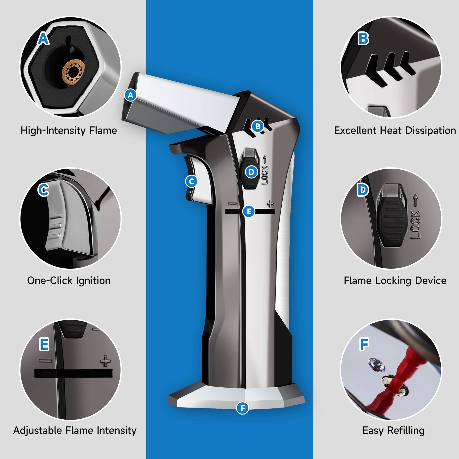Safety Lock – prevents accidental ignition