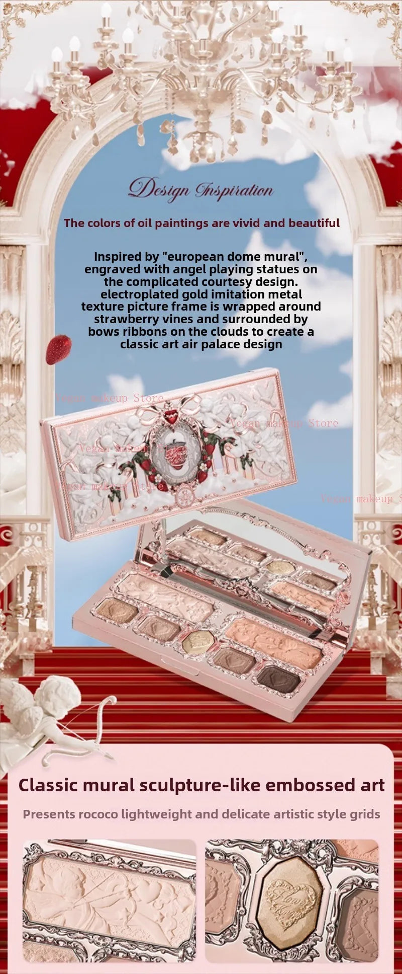Fall in love with your makeup routine using this Strawberry Cupid Collection Face Palette. Featuring 7 enchanting shades of blush, eyeshadow, highlighter, and bronzer, this multi-use palette blends soft pastels and shimmering glow into one perfect compact. Designed to brighten and sculpt your complexion with a kiss of whimsical charm.