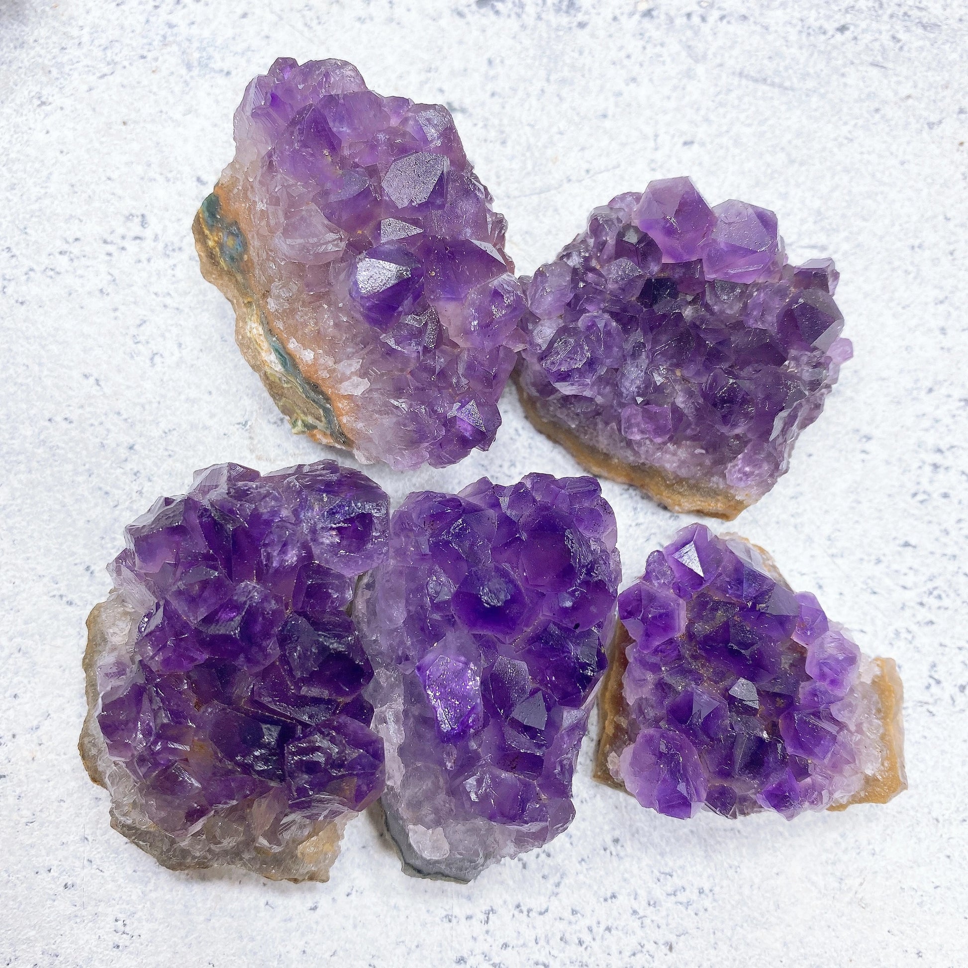 Enhance your space with the natural beauty and healing energy of raw amethyst. Each cluster showcases vibrant purple quartz formations, making it both a powerful energy stone and a stunning decorative piece. Perfect for meditation, feng shui, or gifting, this crystal brings balance, protection, and positive vibes to any environment.