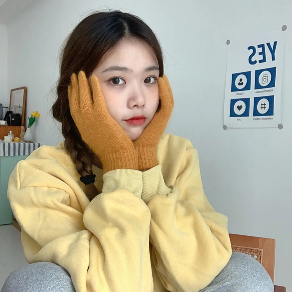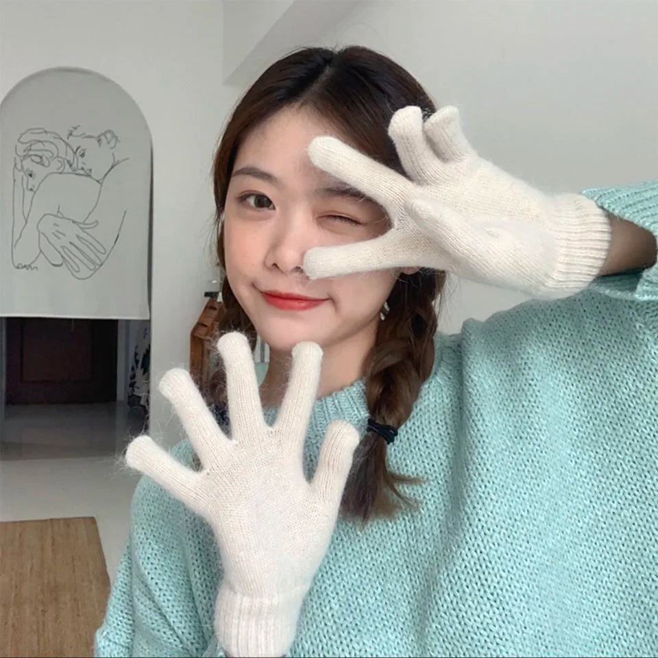 Cute Rabbit Knitted Winter Gloves – Women’s Fur Mittens