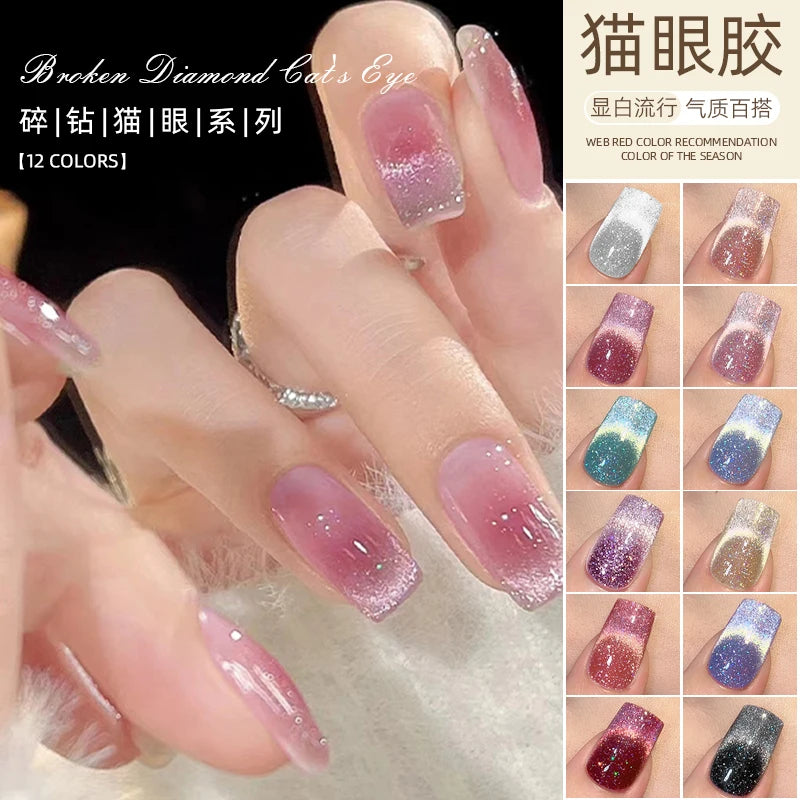 🌈 6 magical gradient shades – ice cat-eye + reflective glitter