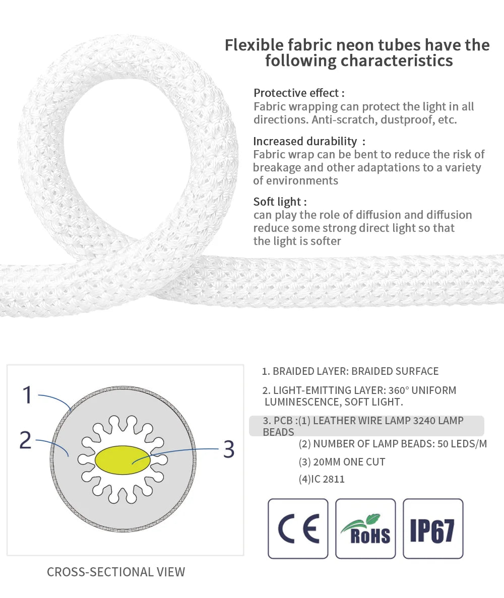Light up your space with professional-grade RGBIC Neon LED Strip Lights. Featuring a 360° reticulate round design, these smart silicone strips deliver smooth, vibrant color transitions perfect for creative décor, DIY projects, or professional lighting setups. With 50 LEDs per meter, flexible design, and IP67 waterproofing, they’re built for durability and stunning visual effects indoors or outdoors.